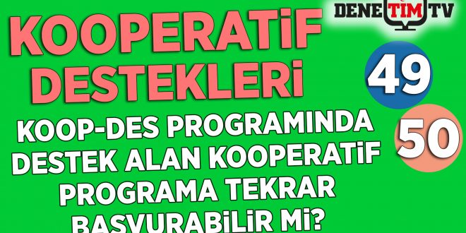 KOOP-DES Programı kapsamında destek alan kooperatifler, Program kapsamında tekrar hibe desteği başvurusunda bulunabilirler mi? Program kapsamında hibe desteği alan kooperatifler, aynı proje konusunda 5 yıl içerisinde tekrar hibe desteği başvurusunda bulunamaz. DAHA FAZLA BİLGİ İÇİN AŞAĞIDAKİ VİDEOYU İZLEYİNİZ